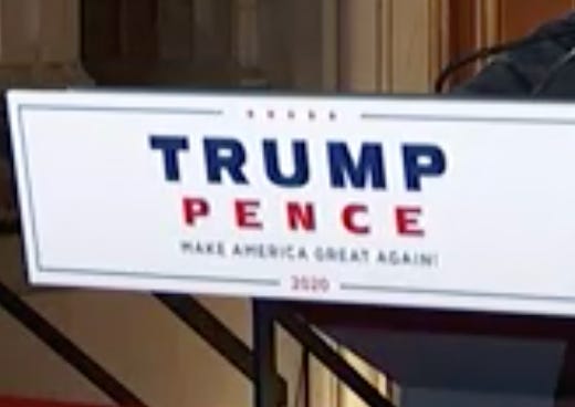 The main hub of the convention is the Andrew W. Mellon Auditorium in Washington, D.C. You may have noticed the alternating signage posted on the lectern Monday, which appeared to be different for live versus pre-taped speeches: