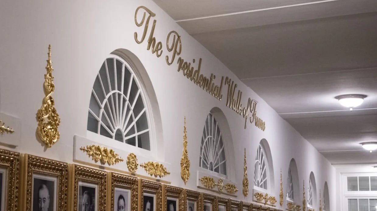 New signage has begun rolling out at the White House this fall. First, the words “The Presidential Walk of Fame” appeared in September in the gold Shelley Script on the West Colonnade. The signage appears above the presidential portraits Trump installed to troll former President Joe Biden.