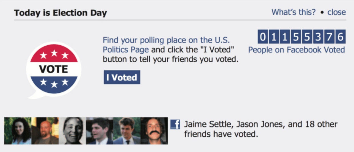 Social media has made the “I Voted” sticker selfie as if not more important than the sticker itself. A 2010 Facebook study found a get-out-the-vote message sent to 61 million users nudged 340,000 people to vote who otherwise would have not. An Instagram Story about voting in New York City in the morning, then, might boost turnout in California in the afternoon in a way that was not possible 40 years ago.