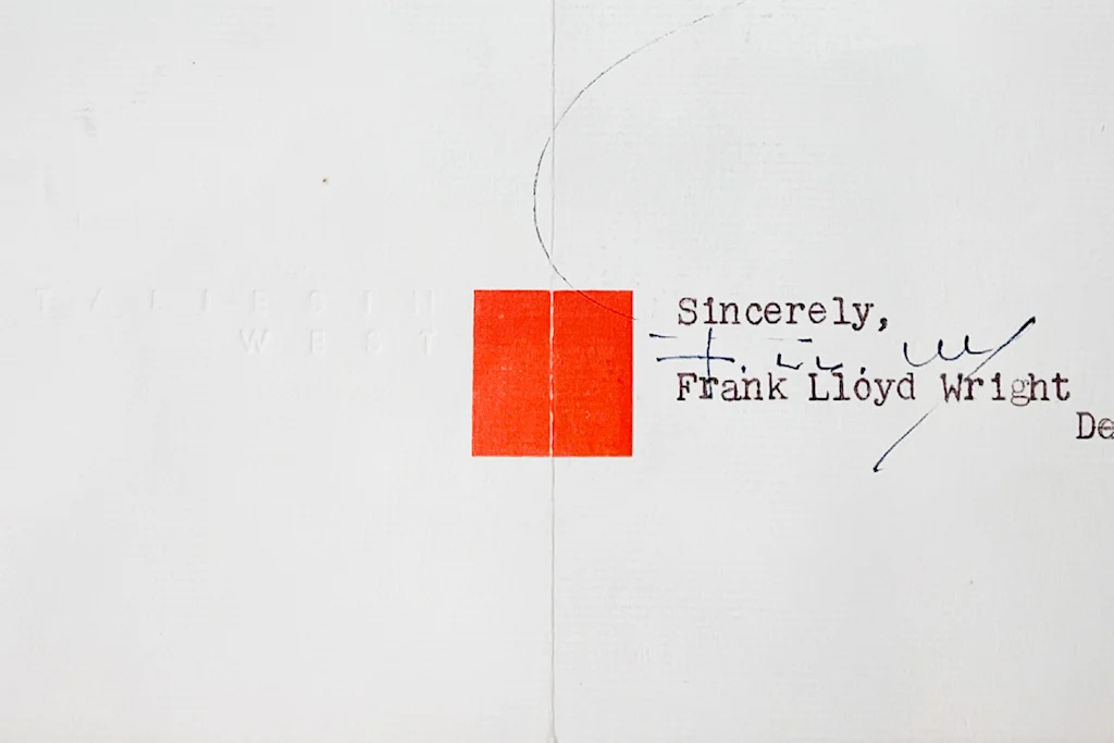 The new logo is a four-by-four square grid that references one of Wright’s visual signatures, a red square. Wright used the shape as his own “stamp of approval” on designs, letters, and buildings, and the shape has been used widely in logos for groups associated with his work, like the Frank Lloyd Wright Foundation and the Frank Lloyd Wright Trust.