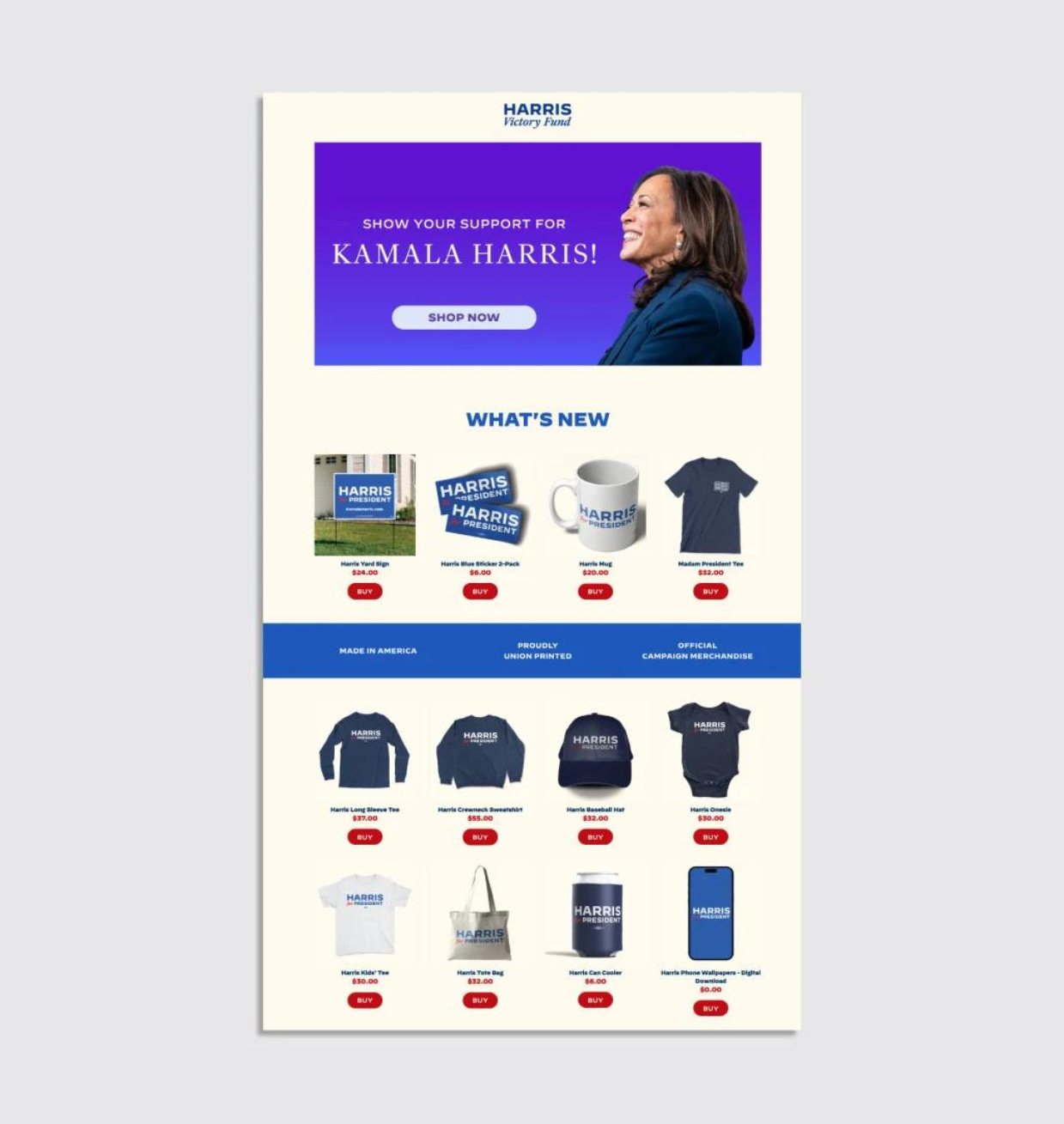 To do this, the design team launched a new Harris for President logo in three hours, and an entire brand refresh, including ads, print collateral like signs, merch, and the website, which they built out in 26 hours. “There’s really no overselling how difficult a task that is—the brand exists everywhere from yard signs and rally placards to the website, our social channels, and our ads,” Harris for President creative director, Kate Conway, told me.