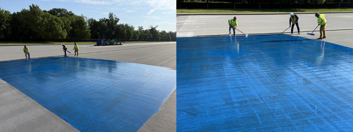 In photos Trump shared to his site, workers in bright yellow safety vests apply what appears to be blue liquid epoxy or rubberized pool coating to the empty pool. “It’s essentially a pool surface, but it’s industrial-grade pool,” Trump said unprompted last week during a White House event on drug prices in which he claimed he had a bigger crowd at the Reflecting Pool than Martin Luther King, Jr.