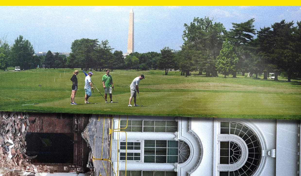 Trump’s burying the East Wing at the site of a municipal golf course he wants to redesign.