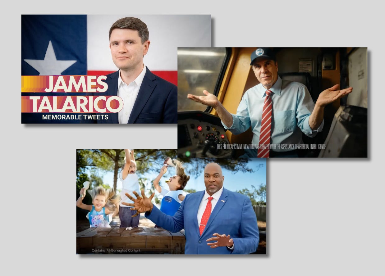 Texas state law bans A.I.-generated “deepfake” political ads within 30 days of an election, and the Talarico video inspired some pushback. “These deepfakes are dangerous and wrong. We need protections not just for politics, but for all Americans that could be targeted,” Sen. Andy Kim (D-N.J) wrote on X. Could this be the direction political advertising takes? Potentially. But there’s also evidence political professionals and voters have concerns.
