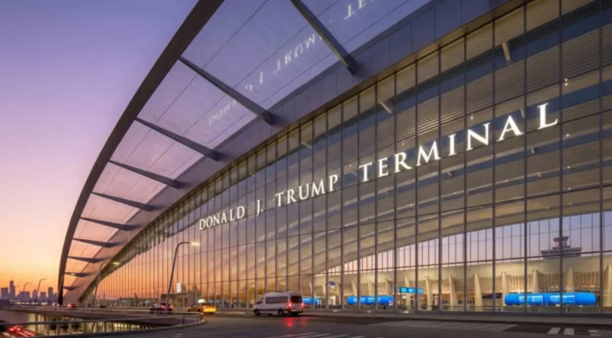 The firms’ proposed terminal design would boast a “grand arch” made of a transparent facade and lettering that reads “Donald J. Trump Terminal.” In some renderings, the name is written out in Trajan, a serif font used by the Trump Organization. In one Reddit thread, commenters criticized the move as “shameless” and brought up Zaha Hadid’s work for authoritarian regimes.