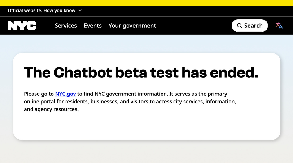 Mamdani said in a press conference last week that a chatbot introduced during former Mayor Eric Adams’s time in office was one of “a number of different things we’re going to pursue for savings,” according to the New York-based publication The City. Today, the site for the tool now says “The Chatbot beta test has ended.”