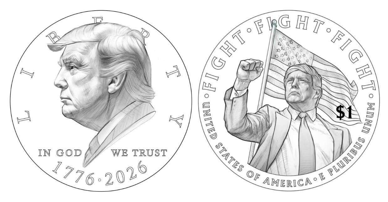 U.S. Treasurer Brandon Beach said Friday that the Treasury Department would release a $1 coin next year “honoring America’s 250th Birthday” and Trump. Draft images of the coin showed a side profile of Trump on one side and the words “fight, fight, fight” on the other over a depiction of Trump with his fist raised in front of a U.S. flag that evokes the image of Trump after the assassination attempt against him in Pennsylvania last year.