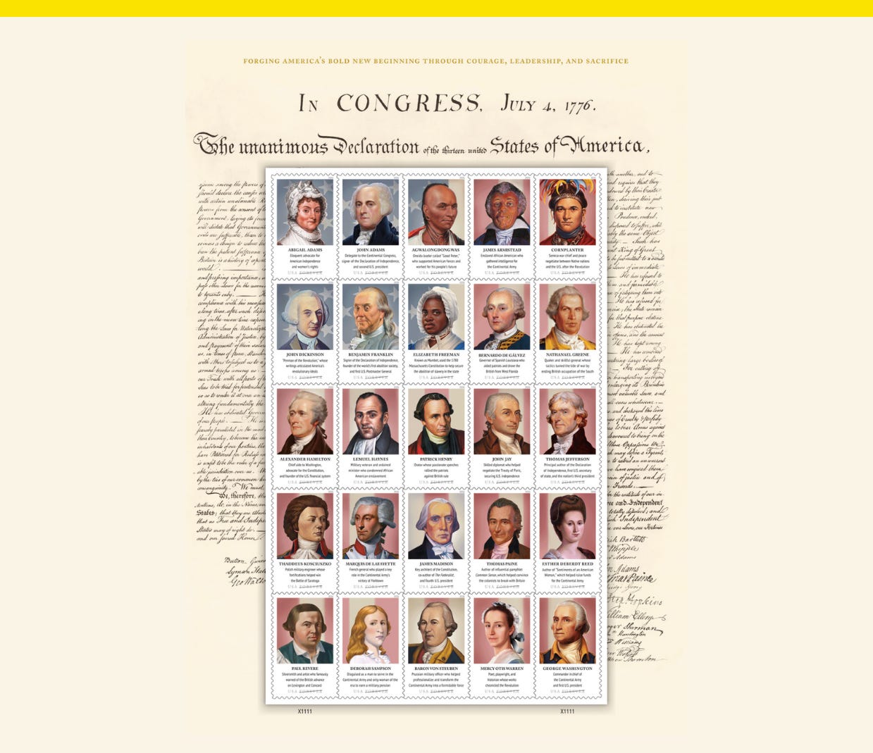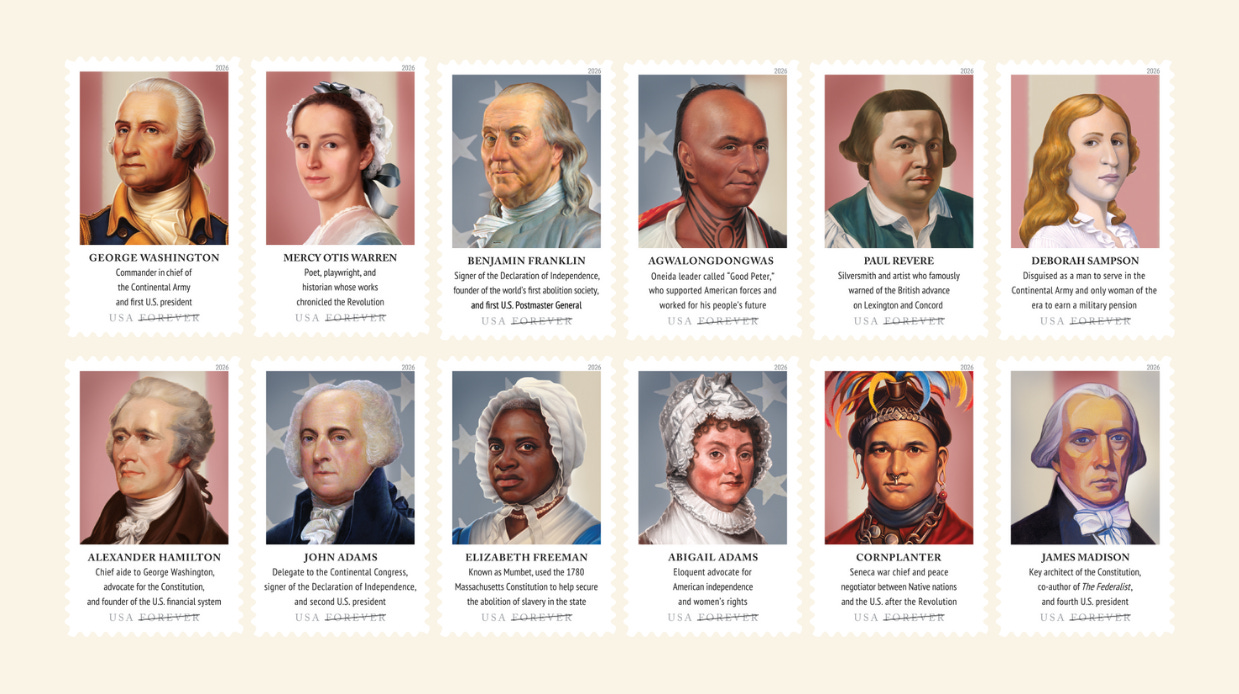 The Postal Service says the Figures of the American Revolution stamps represent “a range of roles and perspectives, from political thinkers and military leaders to writers, diplomats and everyday citizens,” and these figures were chosen to “reflect the collective effort that defined the Revolution.”