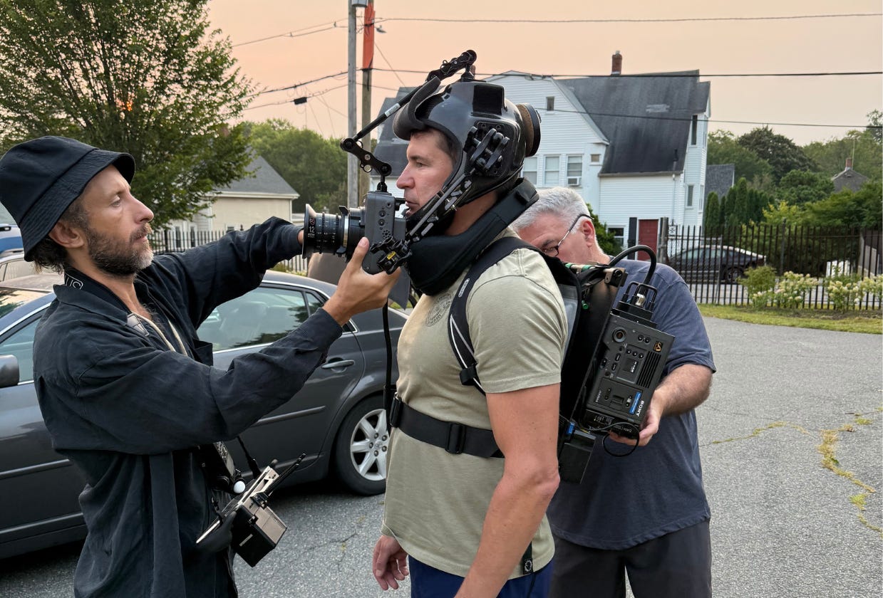 “When we committed to first-person POV, we knew we needed a setup that would feel immersive but still deliver a cinematic image,” McCabe says. It “gave us the image quality of a full-size cinema camera, while letting us separate the sensor and lens to mount them on the helmet,” but it wasn’t light, and Moulton and the ad’s other subjects had to wear the heavy rig for their scenes.