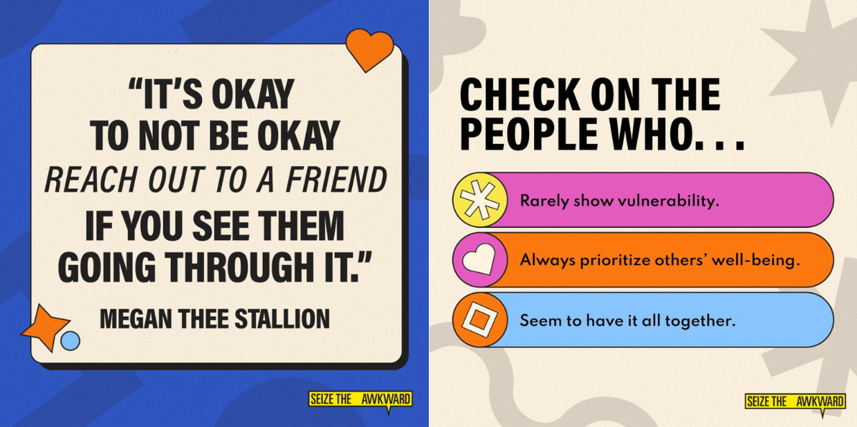 The Ad Council has been busy this year partnering with groups for PSAs about mental well being and suicide prevention, and the common theme is connection and difficult conversations. Just last month they launched a “Don’t Wait. Reach Out.” campaign with the U.S. Department of Veterans Affairs, and April’s “Sound It Out” campaign with Amazon encouraged parents and caregivers to use music to initiate conversations about mental health with young people.