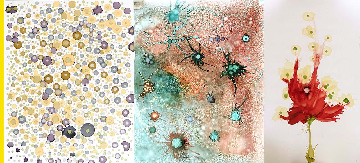 Biden began looking for gallery representation late last year. His paintings, which can resemble flowers or microscopic organisms, are made on Japanese Yupo paper with up to 14 layers of alcohol ink blown through a metal straw.