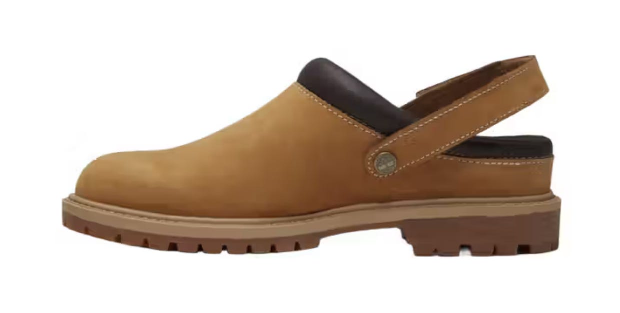 Timberland made a slip-on boot. The upper retains Timberland’s signature nubuck leather build, complete with visible stitching and padded collar details, but traditional lace-up fastenings are replaced by a clog-style slip-on design [Hypebeast]