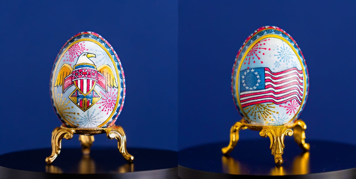 Here’s the American Egg Board commemorative egg for FLOTUS. The industry checkoff group has created commemorative eggs for the first lady for 49 years. The latest, for first lady Melania Trump, was made by Ohio egg artist Mark Malachowski, whose design pays homage to the U.S. semiquincentennial.